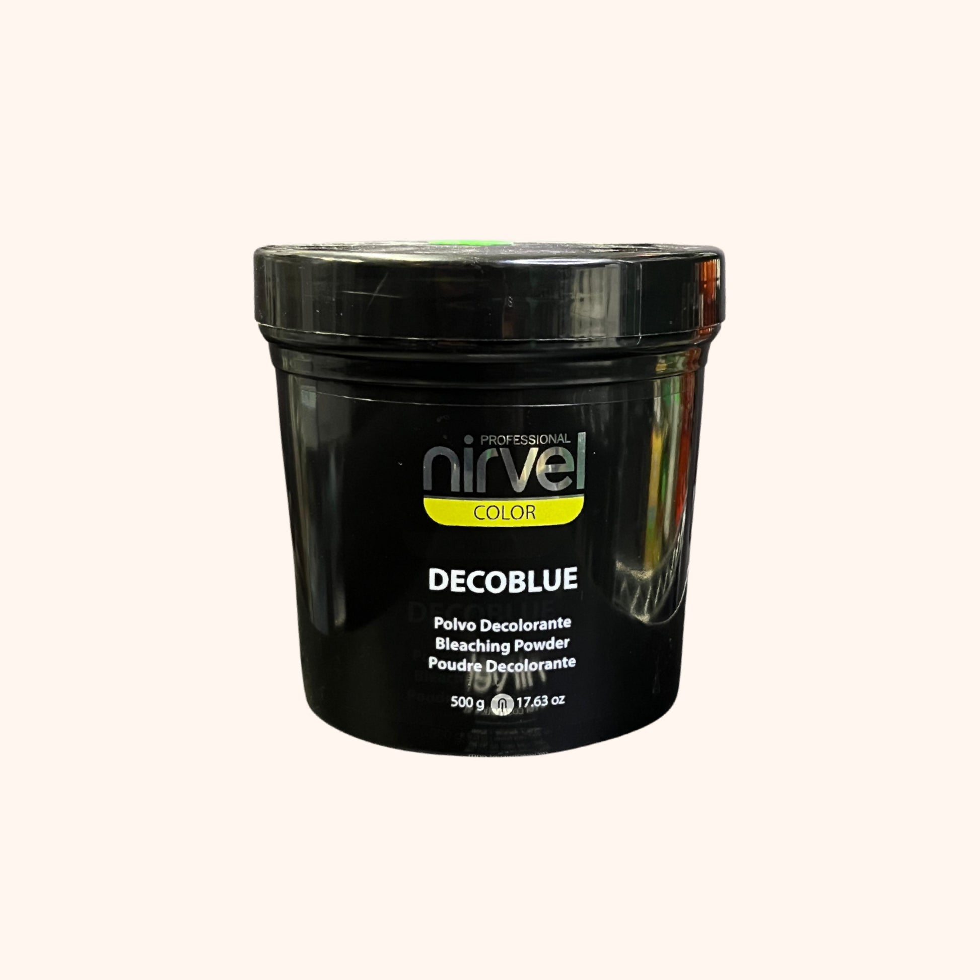 Polvo de decolorante Decoblue de Nirvel permite obtener mechas, reflejos y decoloraciones completa actuando delicadamente sobre los pigmentos del cabello matiz los colores amarillento obteniendo un blanco más óptico su nueva fórmula evita que se difunda el polvo en el aire. Perfumada sensiblemente para una aspiración óptima.