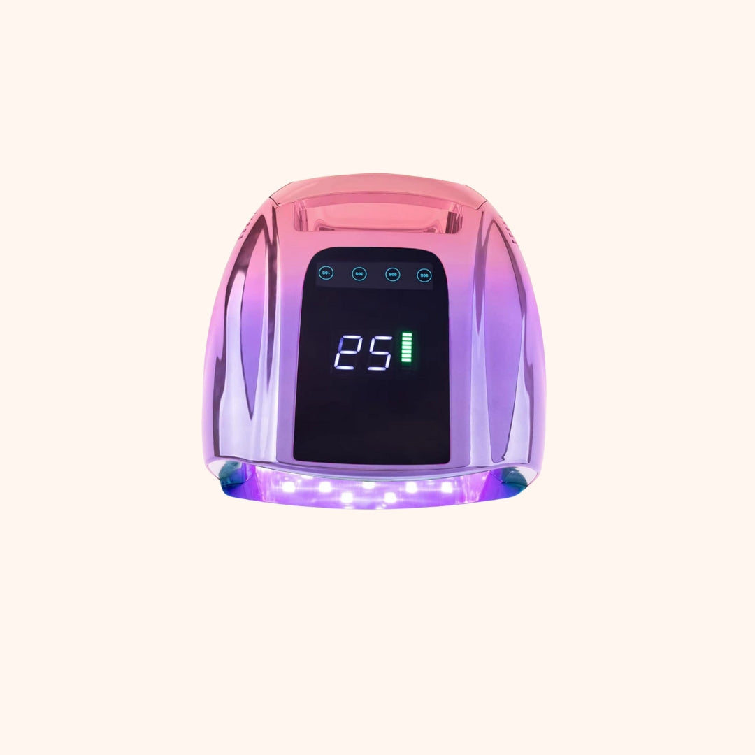 La Hybrid Pro Cure Cordless LED Lamp de Relajate Nail es la lámpara portátil y de alta eficiencia perfecta para curar todo tipo de geles y esmaltes en uñas. Con su elegante diseño en color gradiente dorado, combina estilo y funcionalidad, ofreciendo una experiencia de secado rápida y profesional en todo momento.