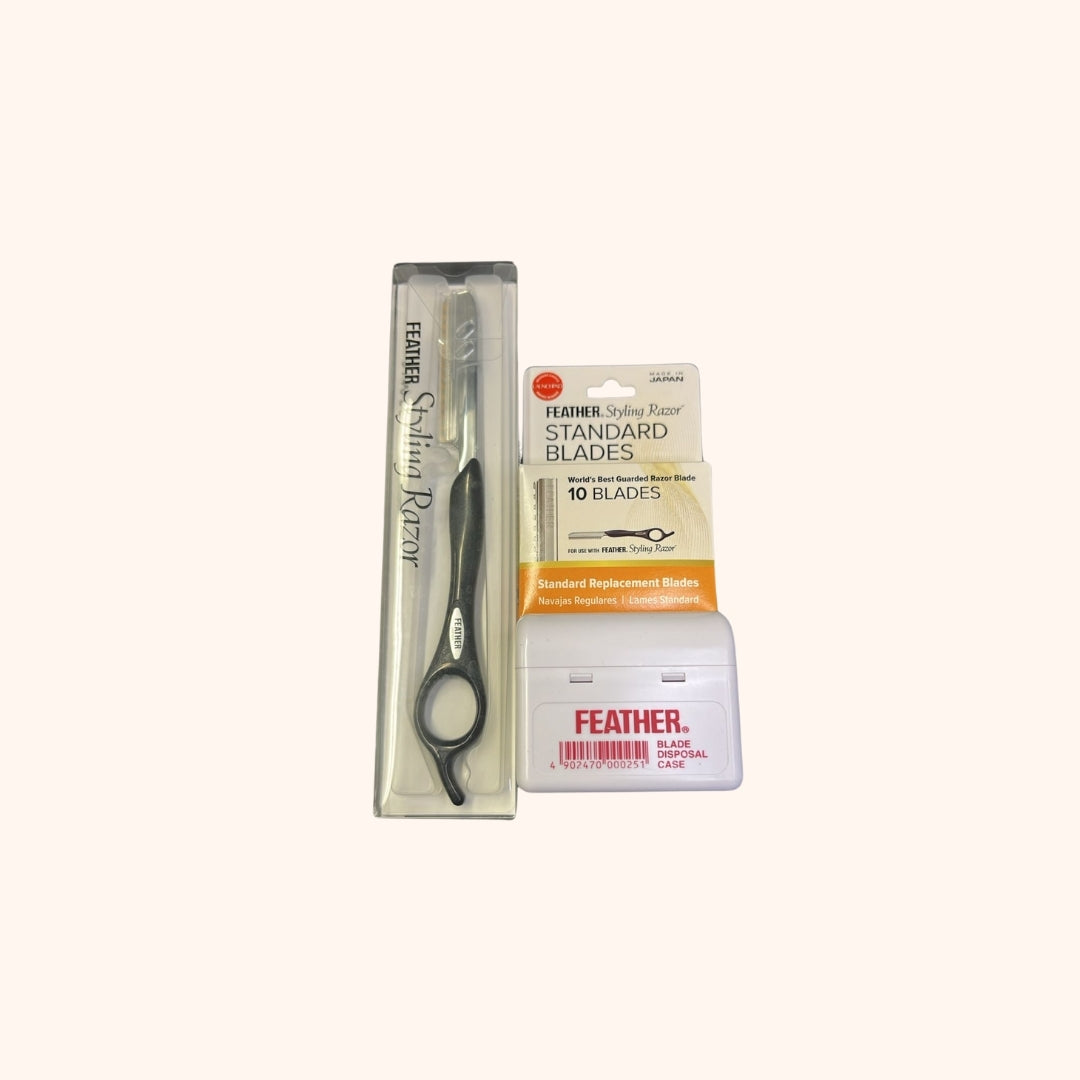 - Incluye: Cuchilla Feather Styling Razor y 10 cuchillas de repuesto.